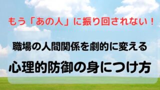 職場の「あの人」に振り回されて、毎日が憂鬱ではありませんか?この記事では、心を平穏に保つための「心理的防御」の身につけ方を解説します。心の負担を軽くし、仕事も人間関係も円滑にするための具体的なヒントをお伝えします。